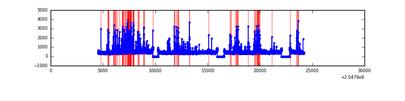 Red curve is a Poisson curve with rate = median count rate of data. |