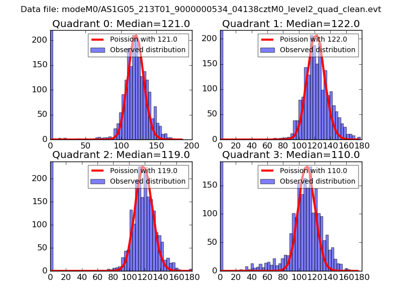 Red curve is a Poisson curve with rate = median count rate of data. |