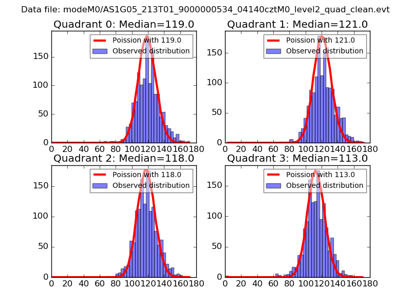 Red curve is a Poisson curve with rate = median count rate of data. |