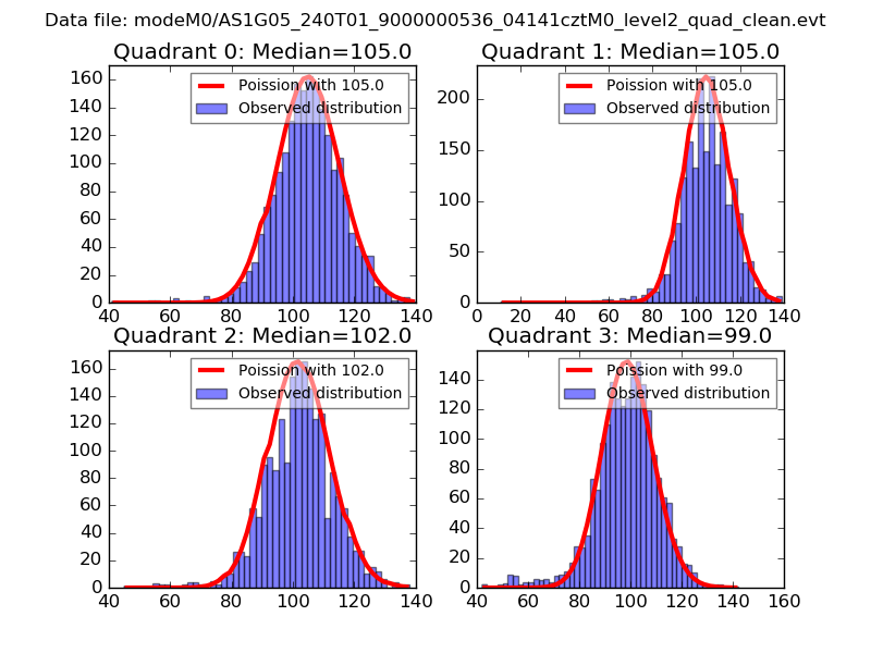 Red curve is a Poisson curve with rate = median count rate of data. |