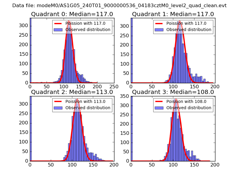 Red curve is a Poisson curve with rate = median count rate of data. |