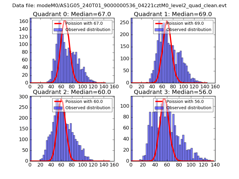 Red curve is a Poisson curve with rate = median count rate of data. |
