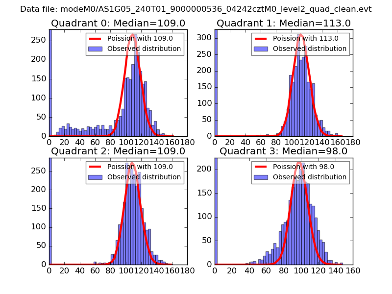 Red curve is a Poisson curve with rate = median count rate of data. |