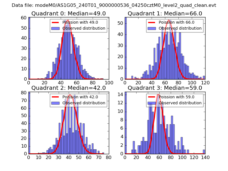 Red curve is a Poisson curve with rate = median count rate of data. |