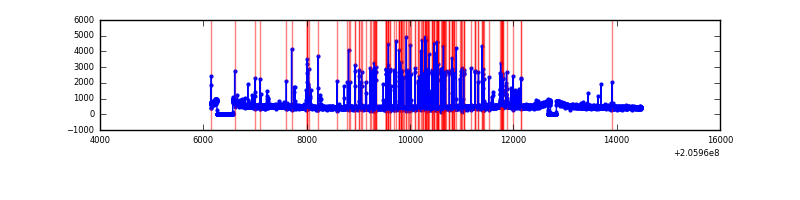 Red curve is a Poisson curve with rate = median count rate of data. |