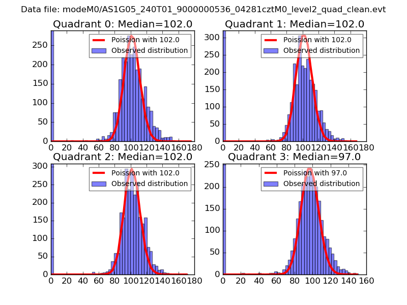 Red curve is a Poisson curve with rate = median count rate of data. |