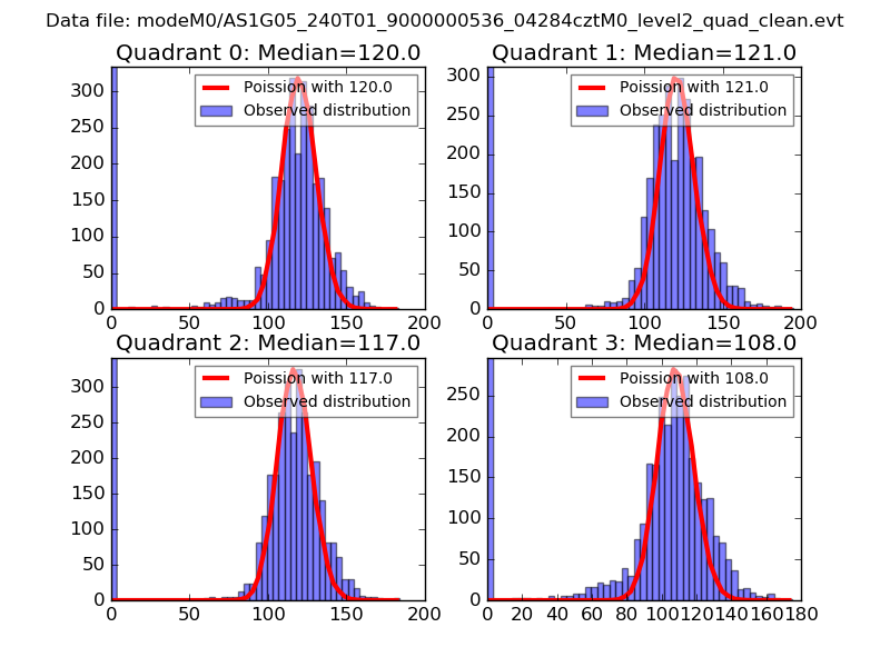 Red curve is a Poisson curve with rate = median count rate of data. |