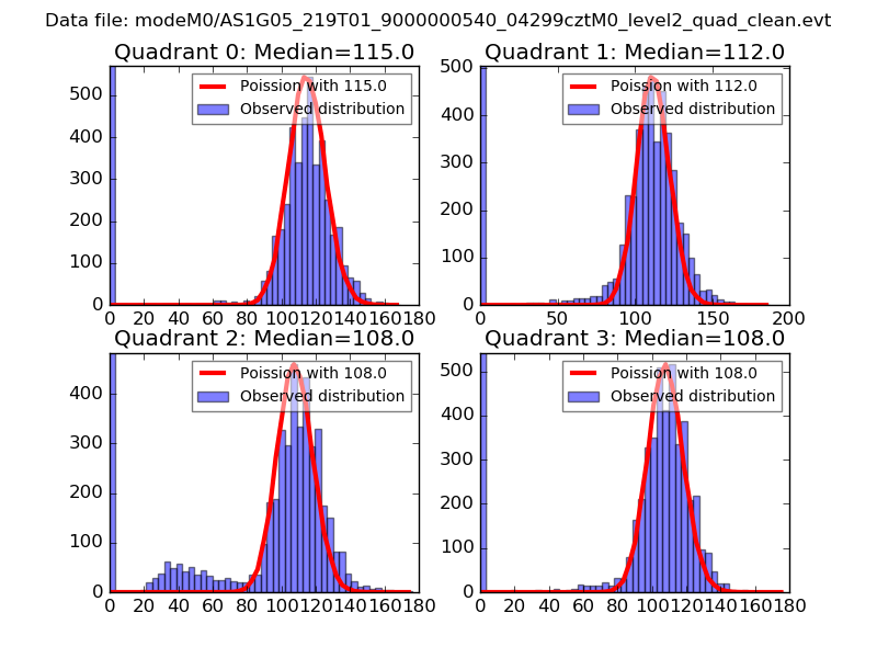 Red curve is a Poisson curve with rate = median count rate of data. |