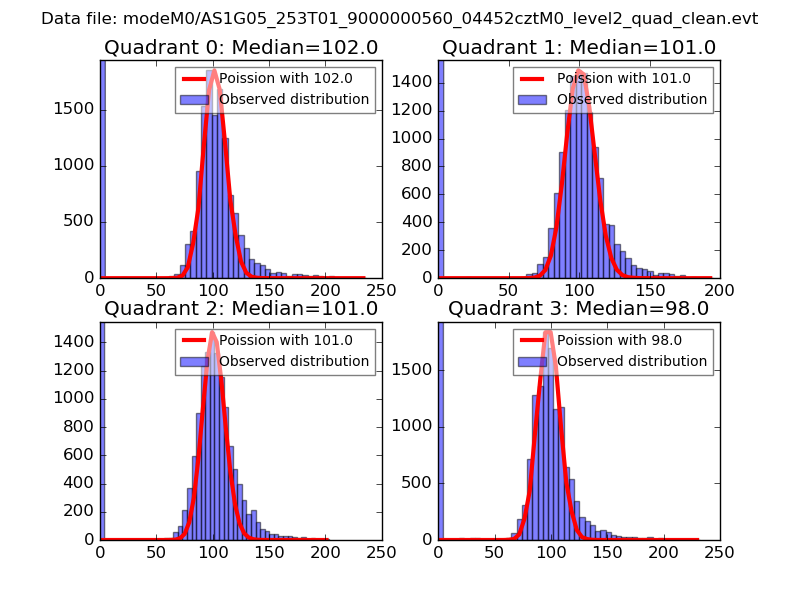 Red curve is a Poisson curve with rate = median count rate of data. |