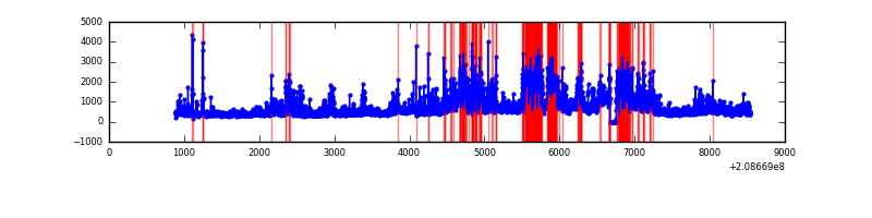 Red curve is a Poisson curve with rate = median count rate of data. |