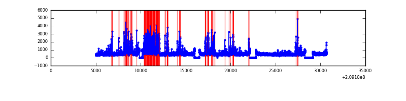 Red curve is a Poisson curve with rate = median count rate of data. |