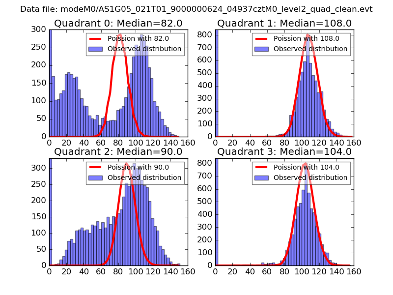 Red curve is a Poisson curve with rate = median count rate of data. |