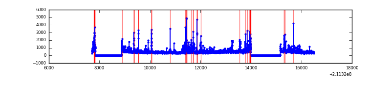 Red curve is a Poisson curve with rate = median count rate of data. |