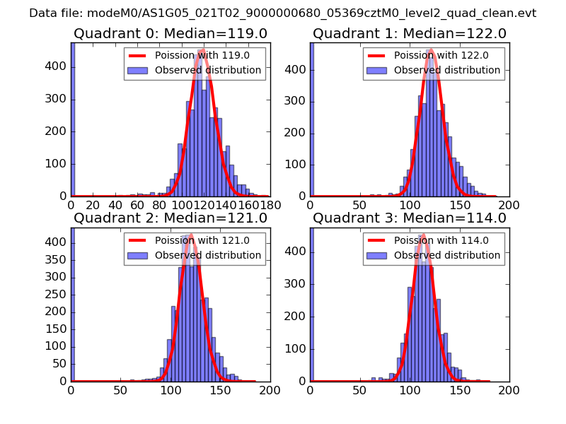 Red curve is a Poisson curve with rate = median count rate of data. |