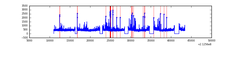 Red curve is a Poisson curve with rate = median count rate of data. |