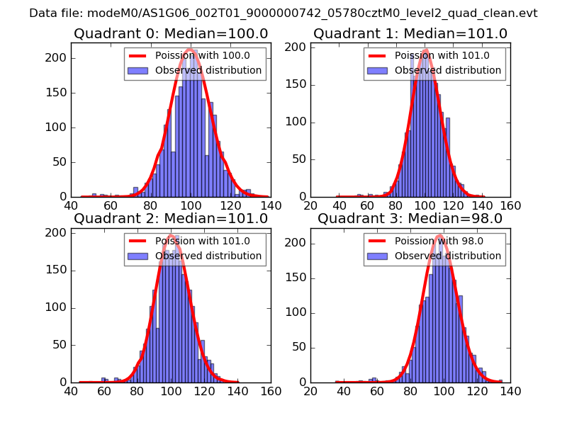 Red curve is a Poisson curve with rate = median count rate of data. |