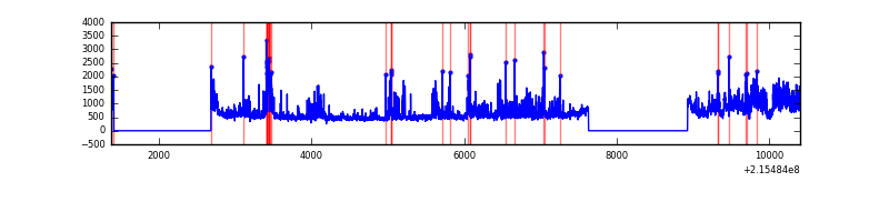 Red curve is a Poisson curve with rate = median count rate of data. |