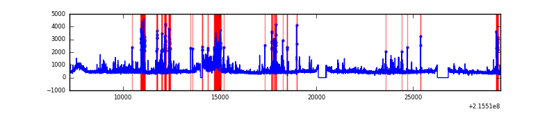 Red curve is a Poisson curve with rate = median count rate of data. |