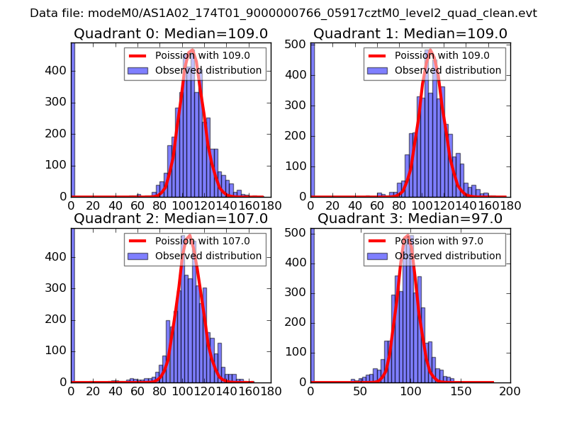 Red curve is a Poisson curve with rate = median count rate of data. |