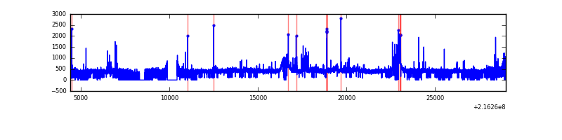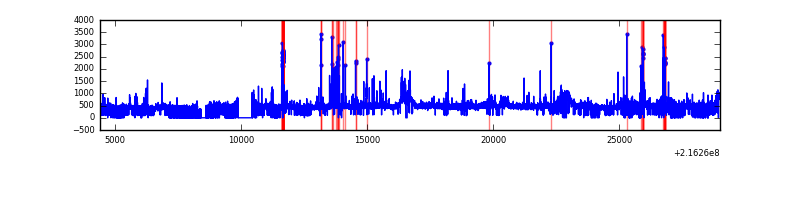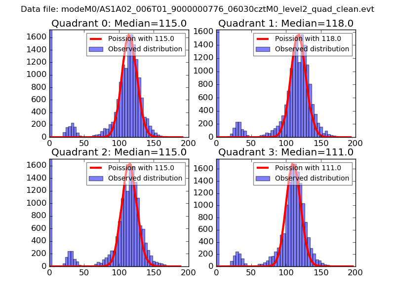 Red curve is a Poisson curve with rate = median count rate of data. |
