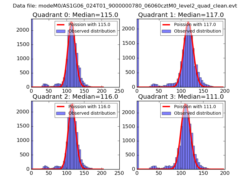 Red curve is a Poisson curve with rate = median count rate of data. |