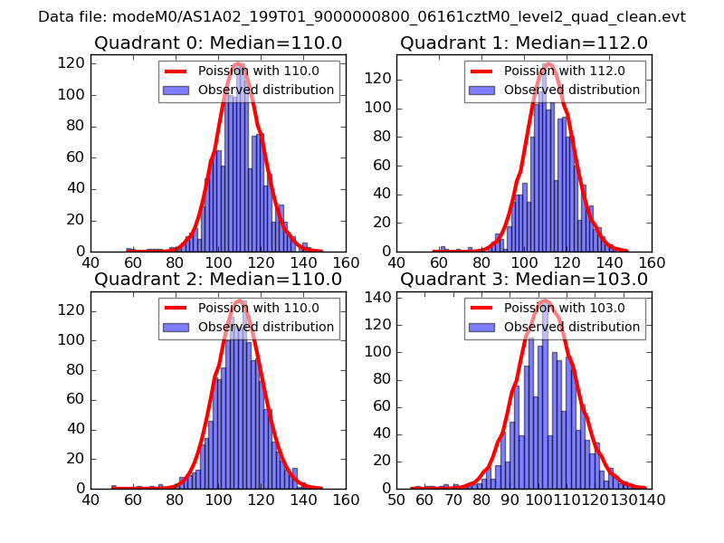 Red curve is a Poisson curve with rate = median count rate of data. |