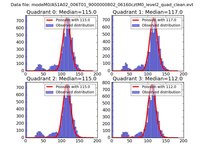 Red curve is a Poisson curve with rate = median count rate of data. |