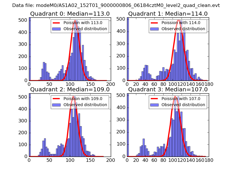 Red curve is a Poisson curve with rate = median count rate of data. |