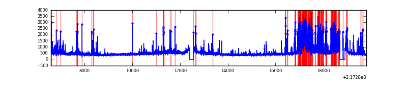 Red curve is a Poisson curve with rate = median count rate of data. |