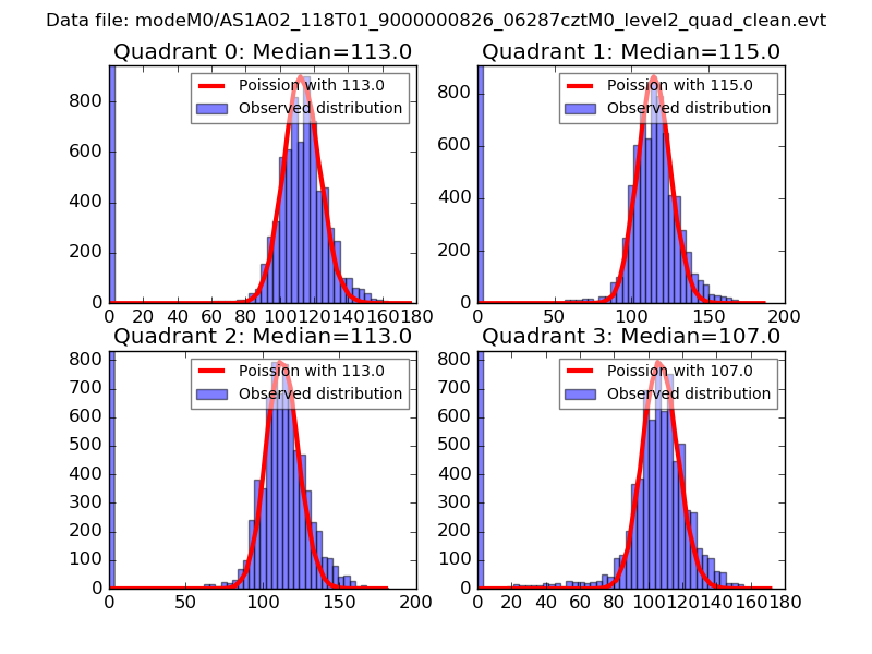 Red curve is a Poisson curve with rate = median count rate of data. |