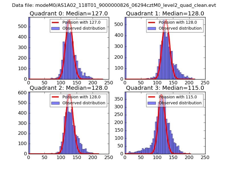 Red curve is a Poisson curve with rate = median count rate of data. |