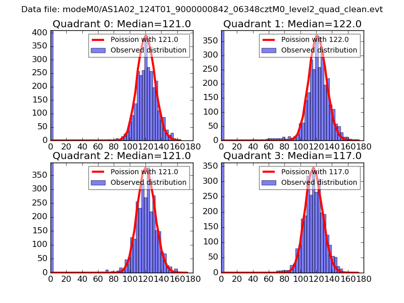 Red curve is a Poisson curve with rate = median count rate of data. |
