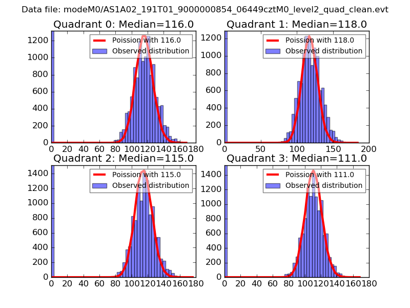 Red curve is a Poisson curve with rate = median count rate of data. |