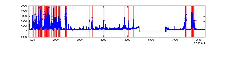 Red curve is a Poisson curve with rate = median count rate of data. |
