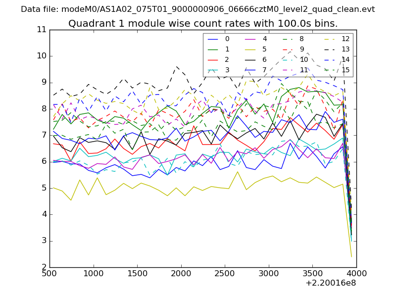 Module-wise count rates for Quadrant A