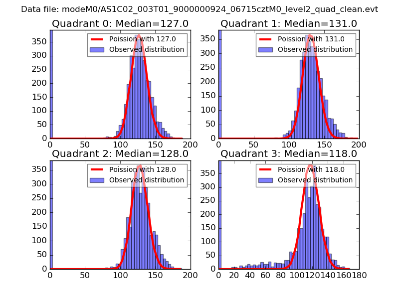 Red curve is a Poisson curve with rate = median count rate of data. |