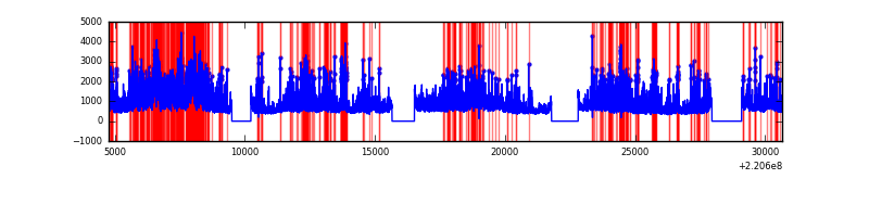 Red curve is a Poisson curve with rate = median count rate of data. |