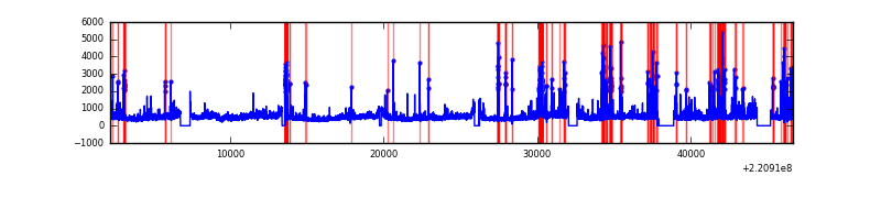 Red curve is a Poisson curve with rate = median count rate of data. |