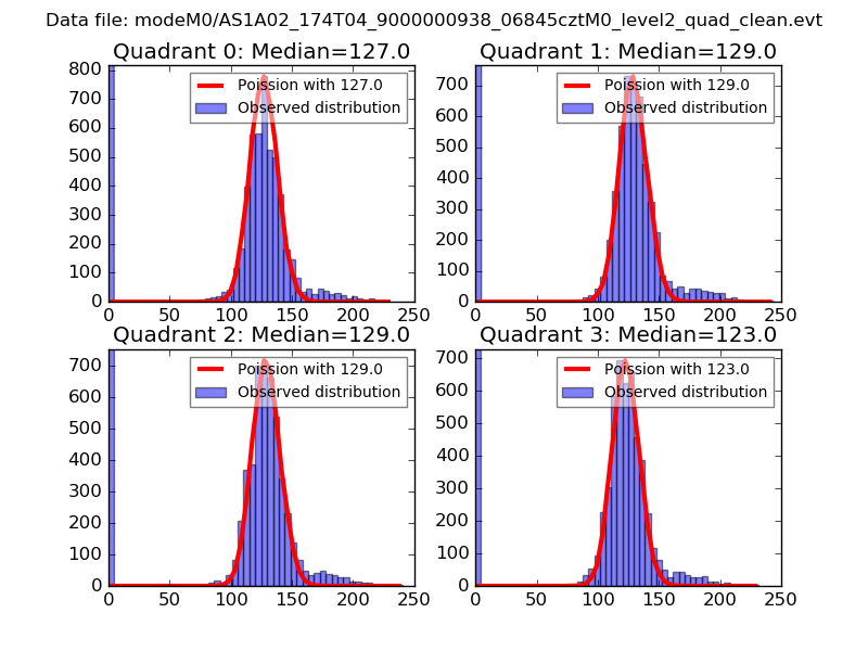 Red curve is a Poisson curve with rate = median count rate of data. |