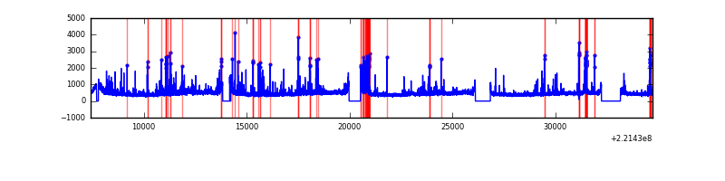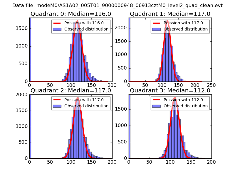 Red curve is a Poisson curve with rate = median count rate of data. |