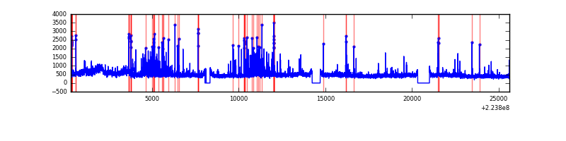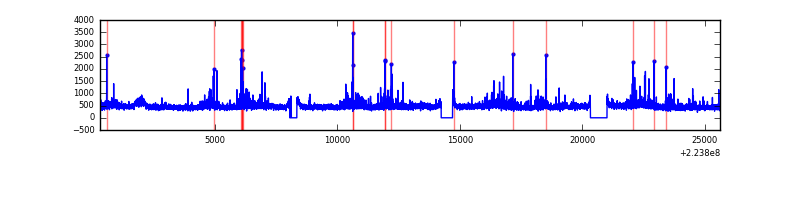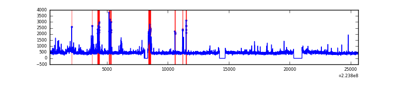 Red curve is a Poisson curve with rate = median count rate of data. |
