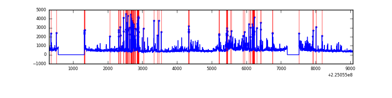 Red curve is a Poisson curve with rate = median count rate of data. |