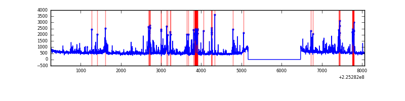 Red curve is a Poisson curve with rate = median count rate of data. |