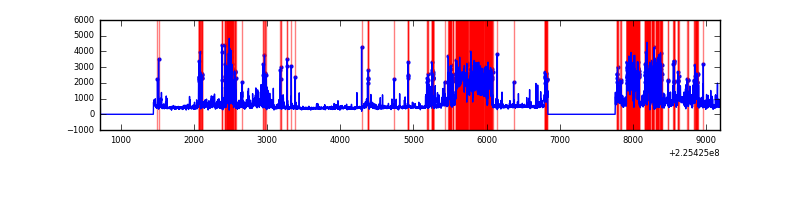 Red curve is a Poisson curve with rate = median count rate of data. |