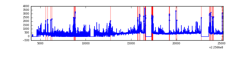 Red curve is a Poisson curve with rate = median count rate of data. |