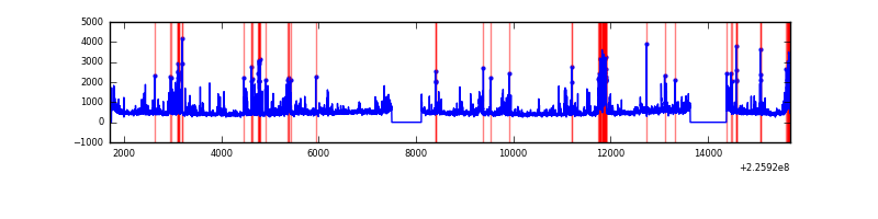 Red curve is a Poisson curve with rate = median count rate of data. |