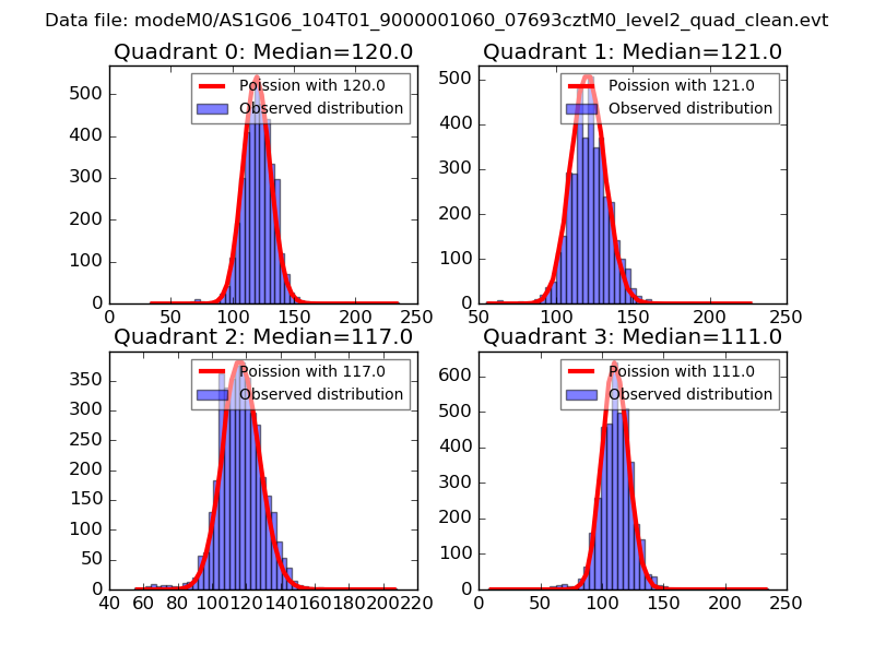Red curve is a Poisson curve with rate = median count rate of data. |