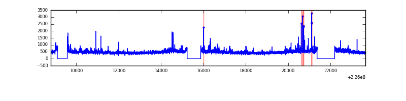 Red curve is a Poisson curve with rate = median count rate of data. |