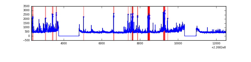 Red curve is a Poisson curve with rate = median count rate of data. |