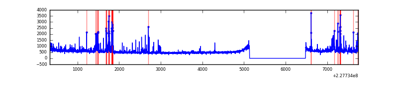 Red curve is a Poisson curve with rate = median count rate of data. |